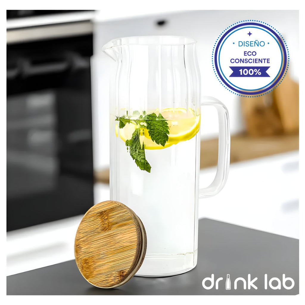 Set de 2 Jarras Cairo de Vidrio con Tapa de Bambú 1.2L