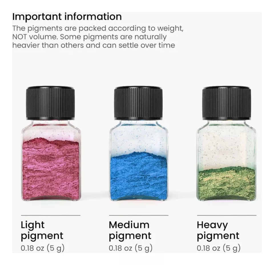 Cuando hayas terminado, simplemente vuelve a colocar la tapa en el contenedor y estarás listo para pasar al próximo color o proyecto. Puedes estar seguro de que estos polvos mantendrán su color vibrante una vez agregados a tu medio de elección. Además, no son tóxicos, por lo que creadores de todos los niveles pueden disfrutar usándolos. Organiza y guarda tu set fácilmente con el conveniente contenedor en el que viene, y comienza a crear brillantes creaciones de bricolaje.
