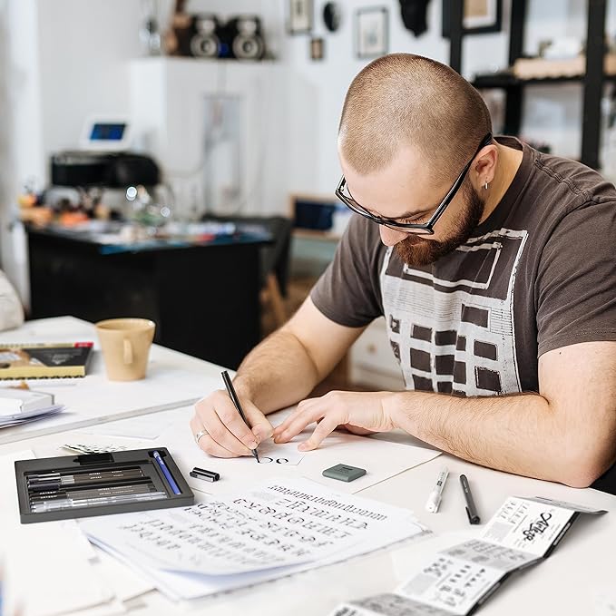 Este completo set incluye una variedad de herramientas esenciales para ayudarte a perfeccionar tus habilidades de lettering y caligrafía.