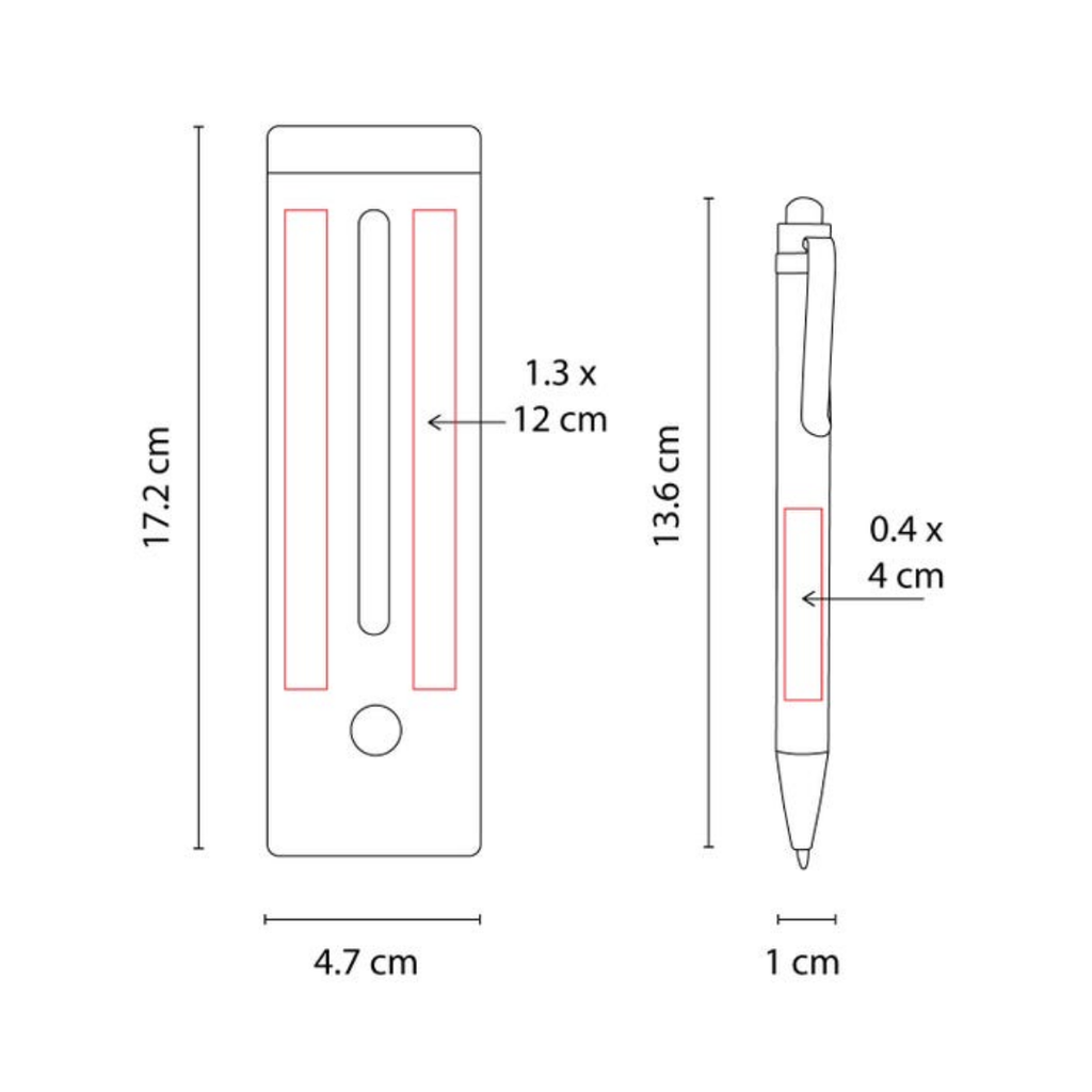 - Medida: 1 x 13.6 cm Bolígrafo / 4.7 x 17.2 cm Estuche