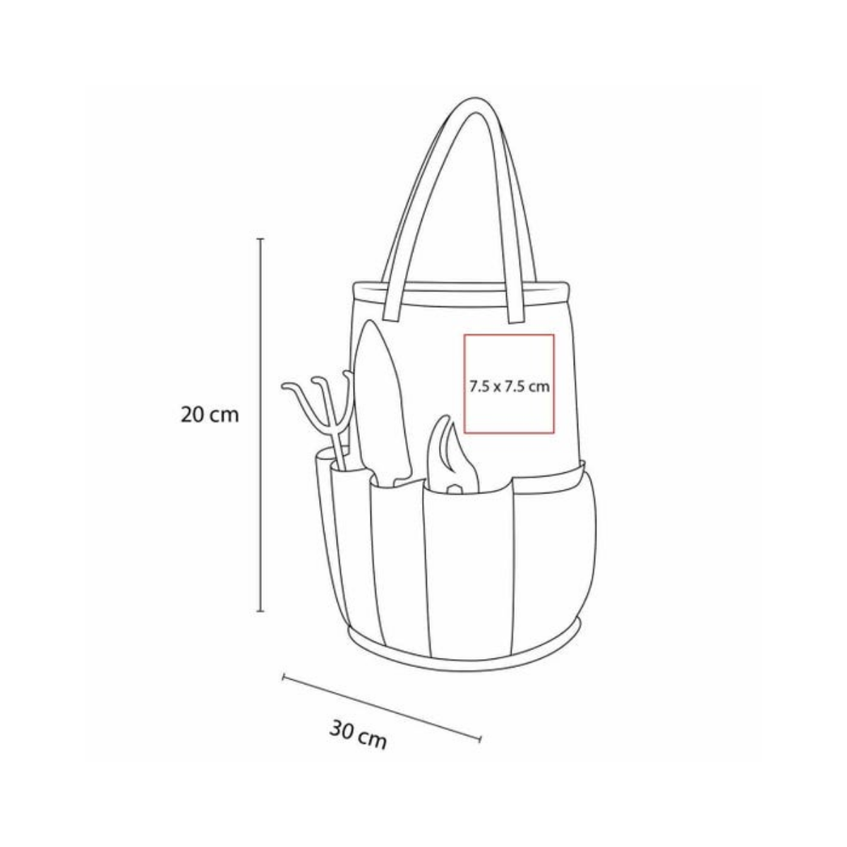 - Set de jardín que incluye pinzas de corte, pala ancha, horqueta, rastrillo, guantes de algodón con antiderrapante y bolsa con asa.