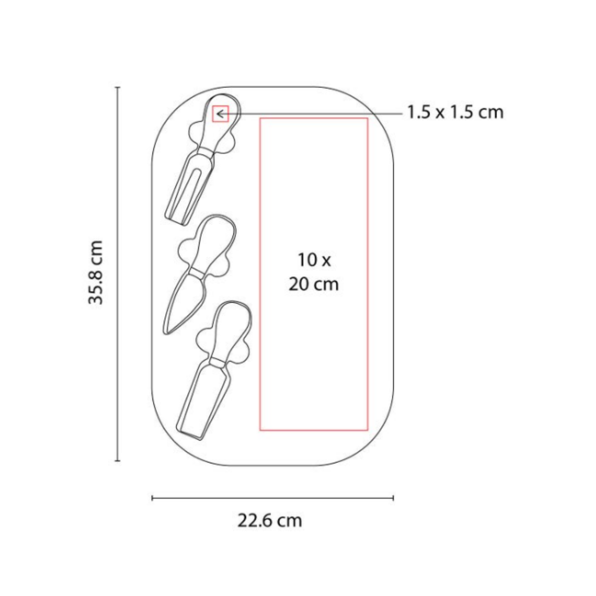 - Set con 1 tabla, 2 cuchillos y 1 tenedor para quesos.