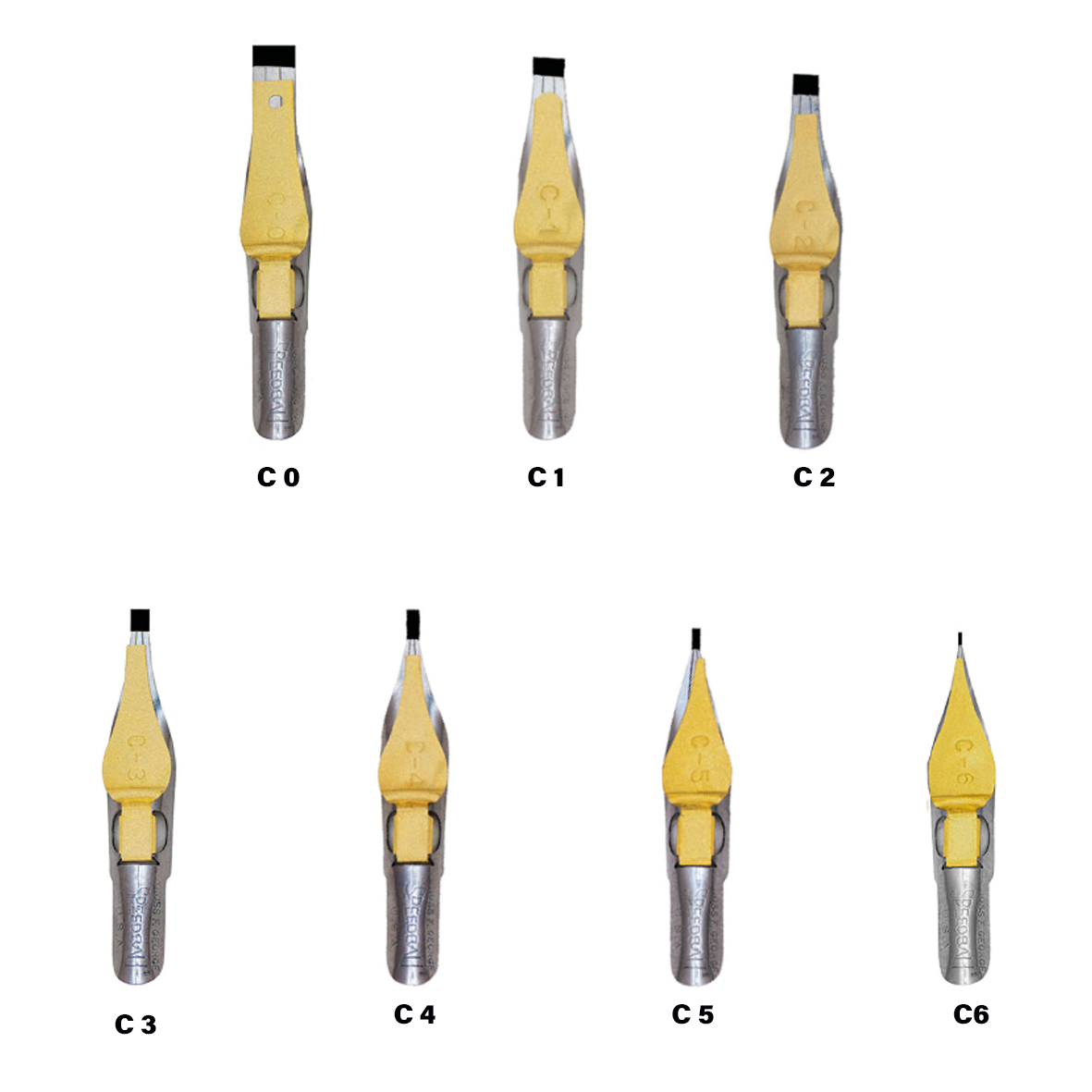 Las plumillas estilo “C” tienen puntas planas y están disponibles en 7 medidas diferentes.
