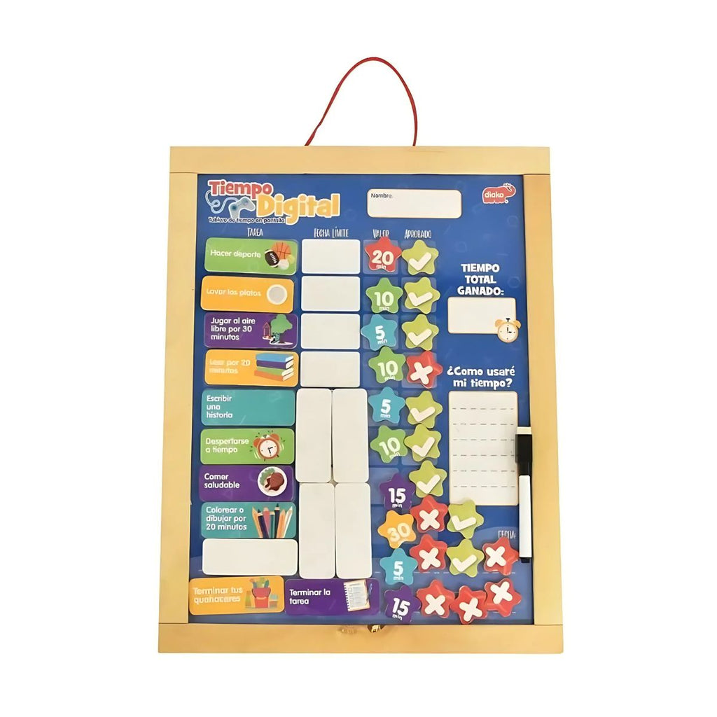 El Tablero de Recompensas Digital Diako es una herramienta práctica y educativa diseñada para fomentar la responsabilidad, el cumplimiento de metas y el desarrollo de buenos hábitos en el día a día. Su dinámica permite organizar actividades y tareas, asignar tiempos de cumplimiento y otorgar recompensas relacionadas con el uso de dispositivos digitales, ayudando a equilibrar el tiempo de ocio y aprendizaje.