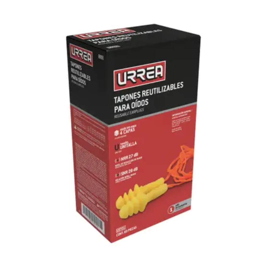 Protege tu audición en entornos de alto ruido con los tapones para oídos reutilizables Urrea, diseñados para ofrecer una reducción efectiva del sonido sin sacrificar comodidad. Fabricados con material flexible y duradero, se adaptan fácilmente al canal auditivo para un ajuste seguro durante jornadas prolongadas. Ideales para industria, construcción, talleres y mantenimiento, estos tapones ayudan a prevenir daños auditivos y permiten su uso repetido, convirtiéndose en una solución práctica, confiable y económica para la protección personal en ambientes ruidosos.