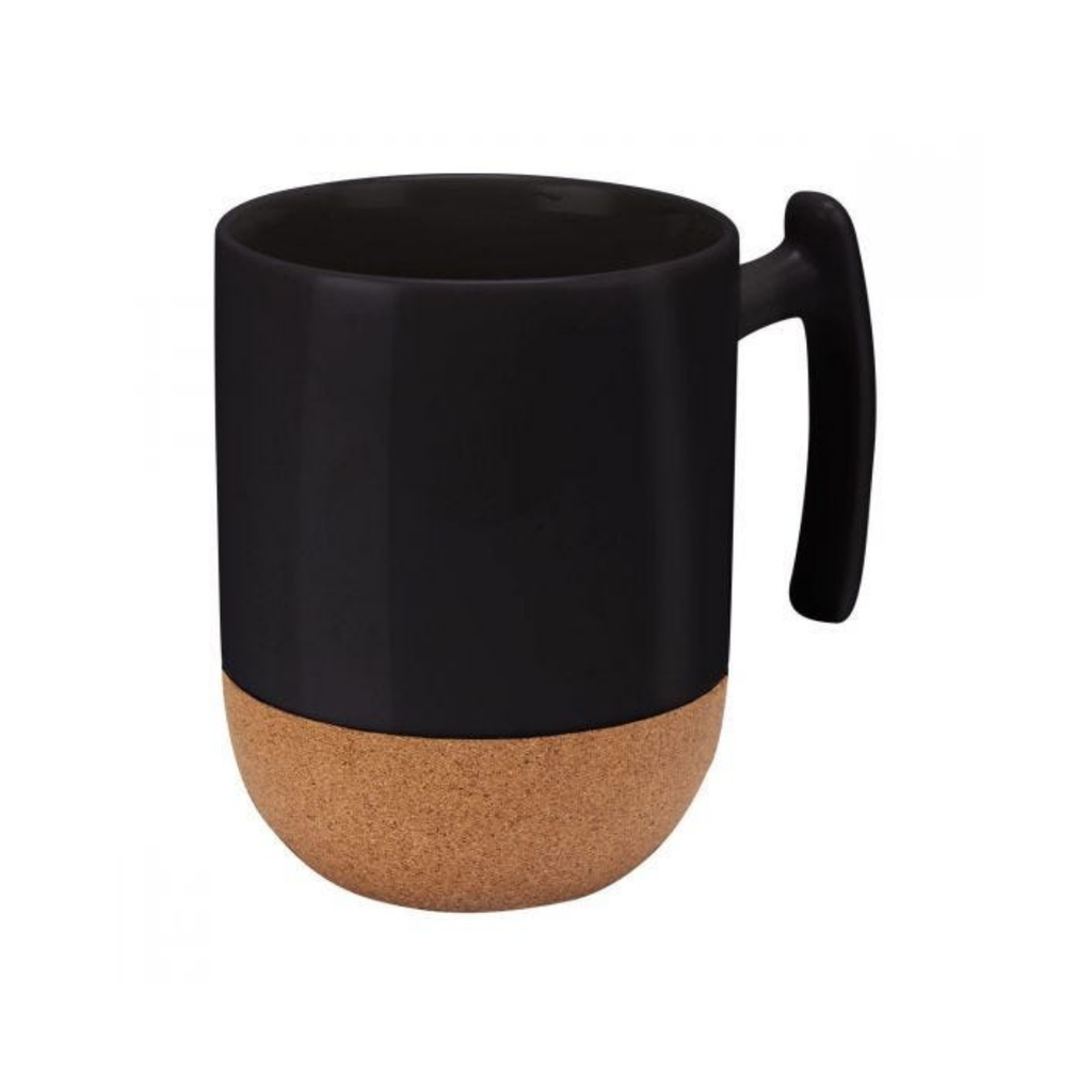 Taza de porcelana para café/té con un diseño minimalista. Para darle un toque diferente su base es corcho. Esto hace un excelente contraste al diseño. Disponible en blanco y en negro.