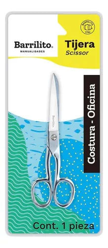 Las tijeras Barrilito son perfectas para los trabajos de costura más eficientes. Es totalmente de material de acero inoxidable con sus puntas afiladas y mango de de alta resistencia con ojos uniformes y acabado brillante de espejo. La medida es de 6" (15. 24 cm). Corta hilos, estambre, telas y demás productos.