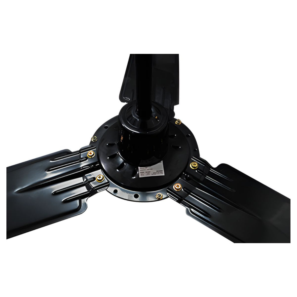 Su estructura está diseñada para ofrecer un rendimiento óptimo, integrando aspas de 61.5 cm que favorecen un flujo amplio y uniforme. La instalación alcanza una altura máxima de 56" (142.6 cm) y el equipo cuenta con un diámetro total de 142.6 cm, garantizando una cobertura eficiente dentro de la habitación.