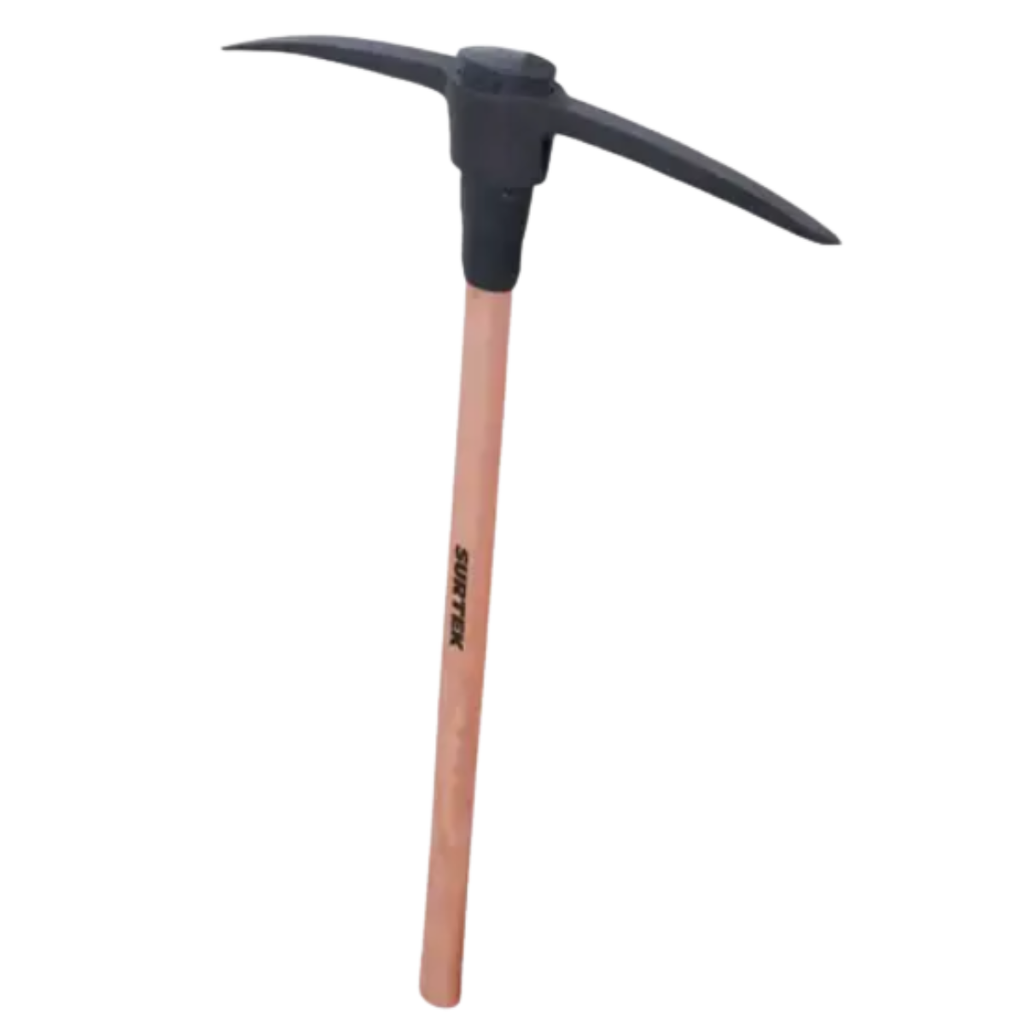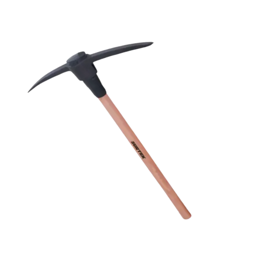 El zapa-pico con mango de madera de 36 pulgadas y 5 lb es una herramienta manual diseñada para excavar, romper tierra dura, piedras o materiales compactos en jardinería, agricultura y construcción. Combina la punta en forma de pico para penetrar suelos duros y la punta en forma de zapa para remover tierra o cavar zanjas, ofreciendo versatilidad en un solo instrumento. Su mango de madera proporciona resistencia y comodidad durante el uso prolongado.